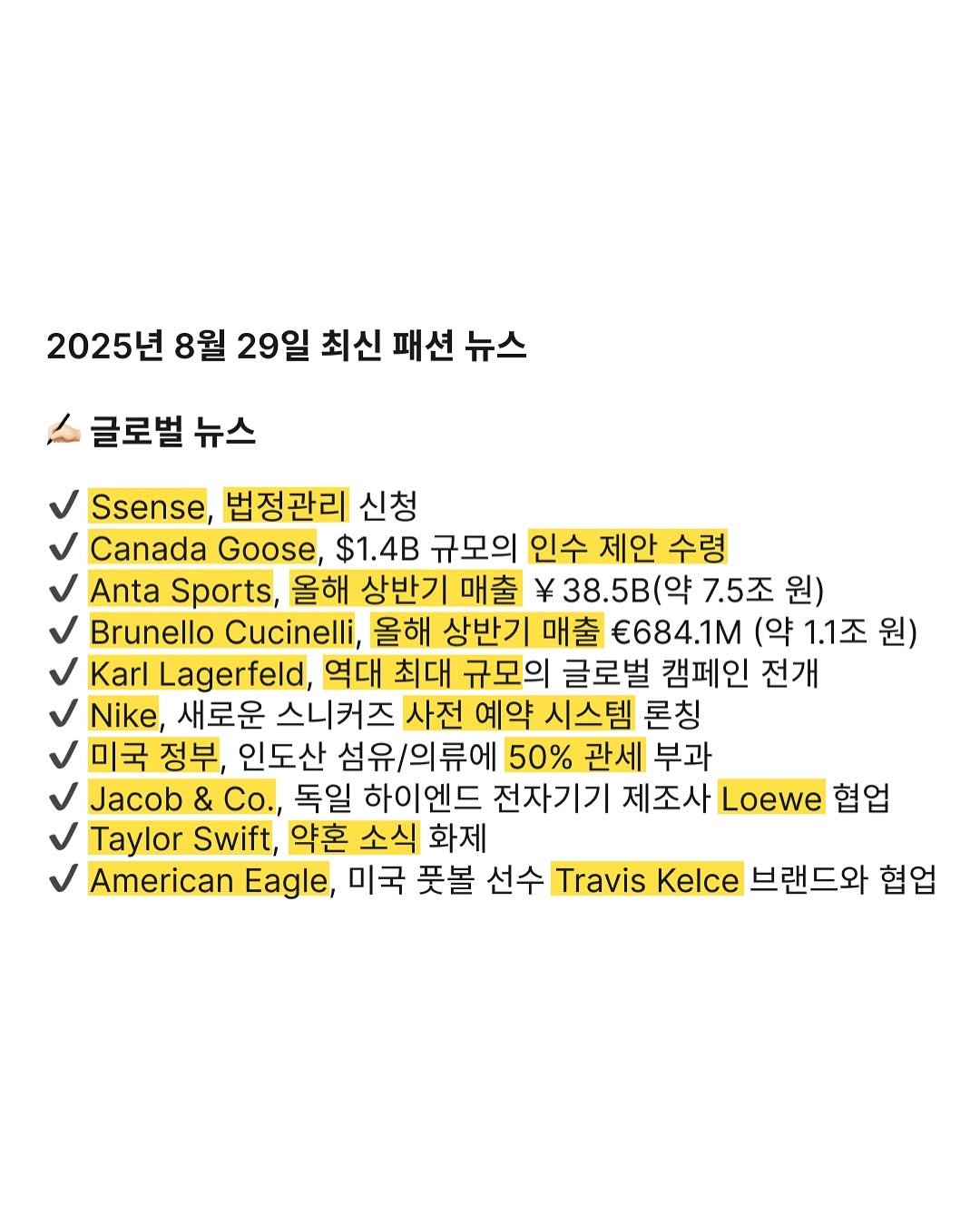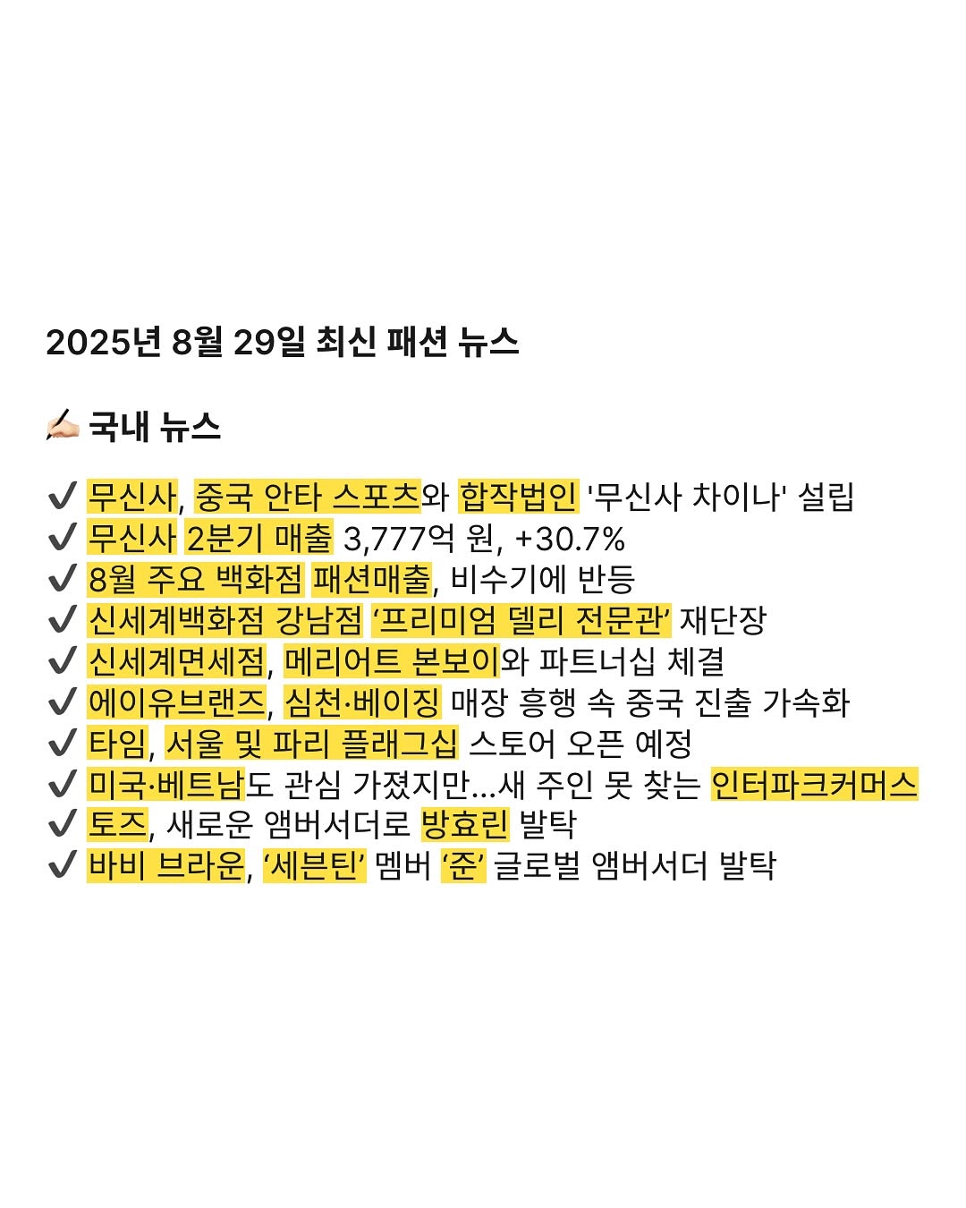2025년 8월 29일 최신 패션 뉴스