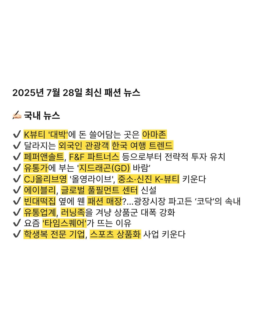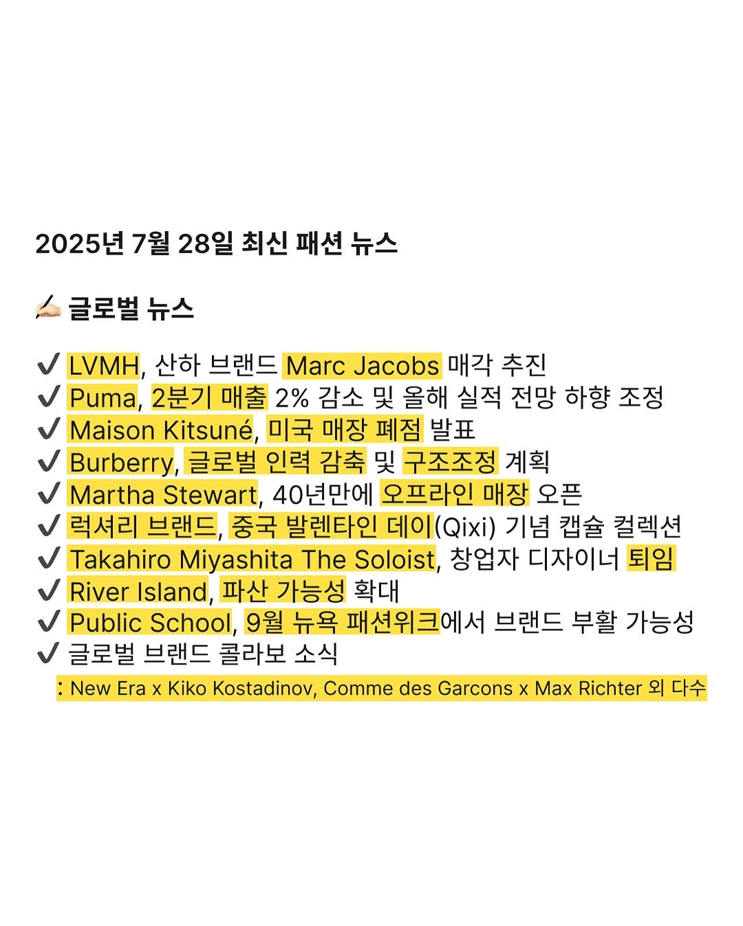 2025년 7월 28일 최신 패션 뉴스