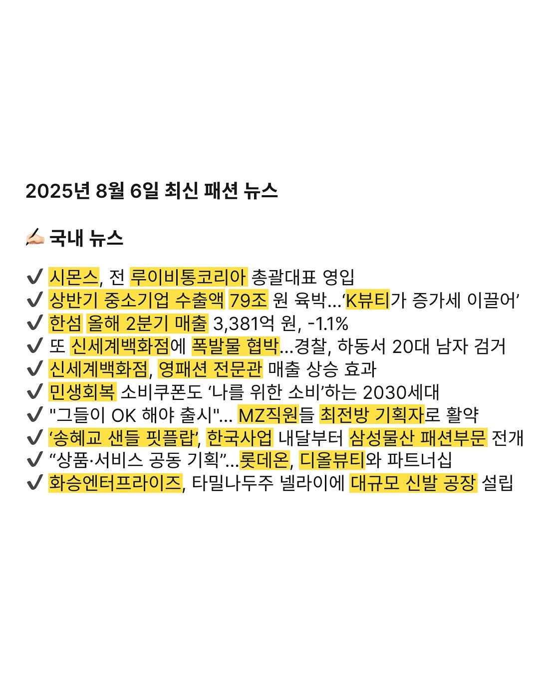 2025년 8월 6일 최신 패션 뉴스