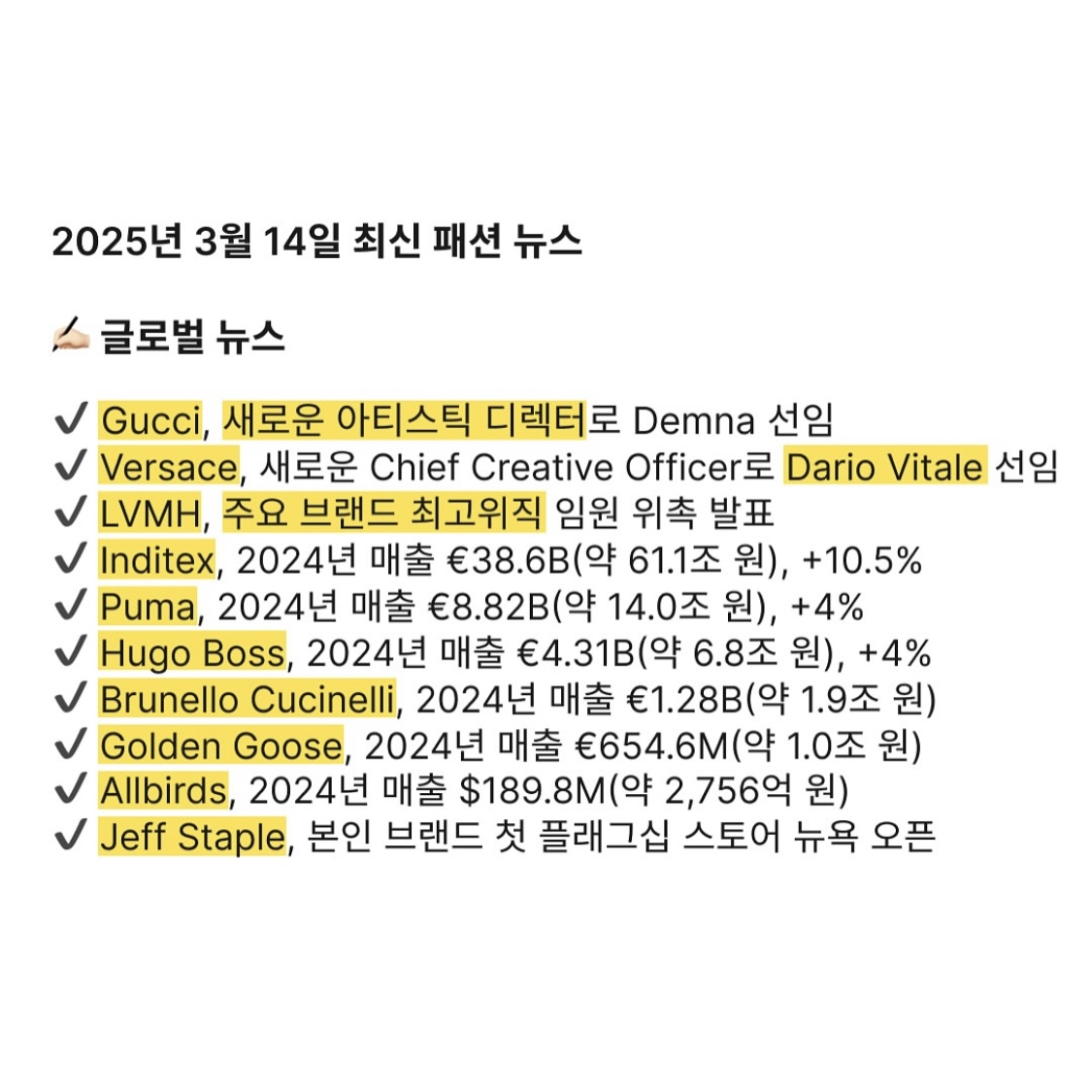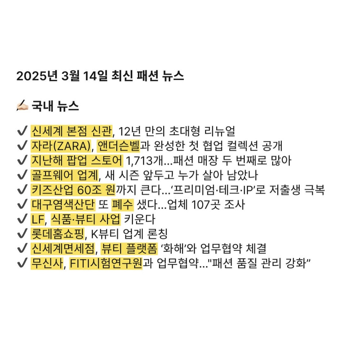 2025년 3월 14일 최신 패션 뉴스