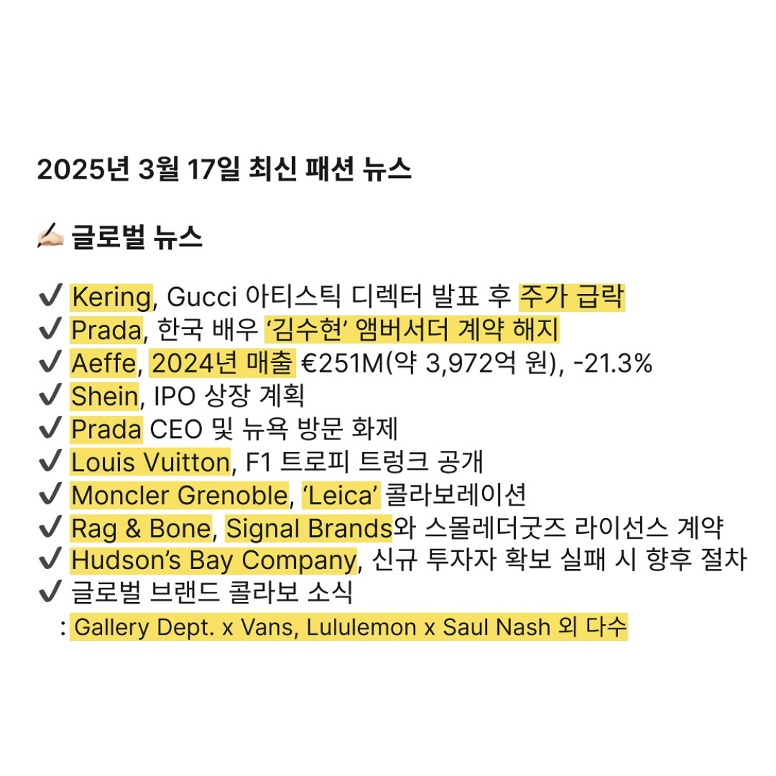 2025년 3월 17일 최신 패션 뉴스