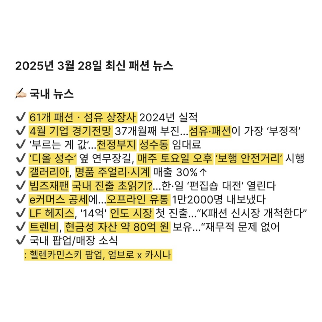 2025년 3월 28일 최신 패션 뉴스