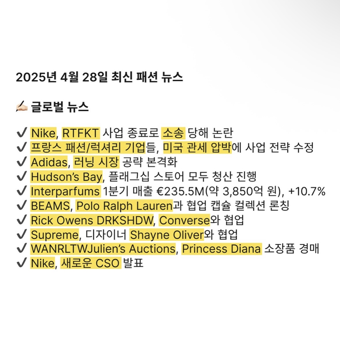2025년 4월 28일 최신 패션 뉴스