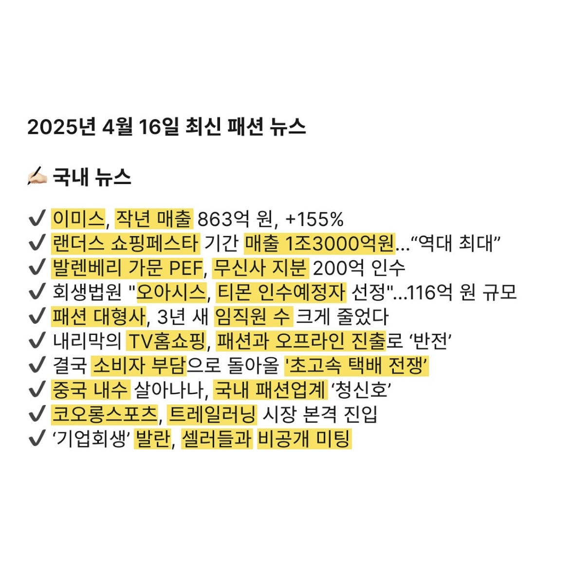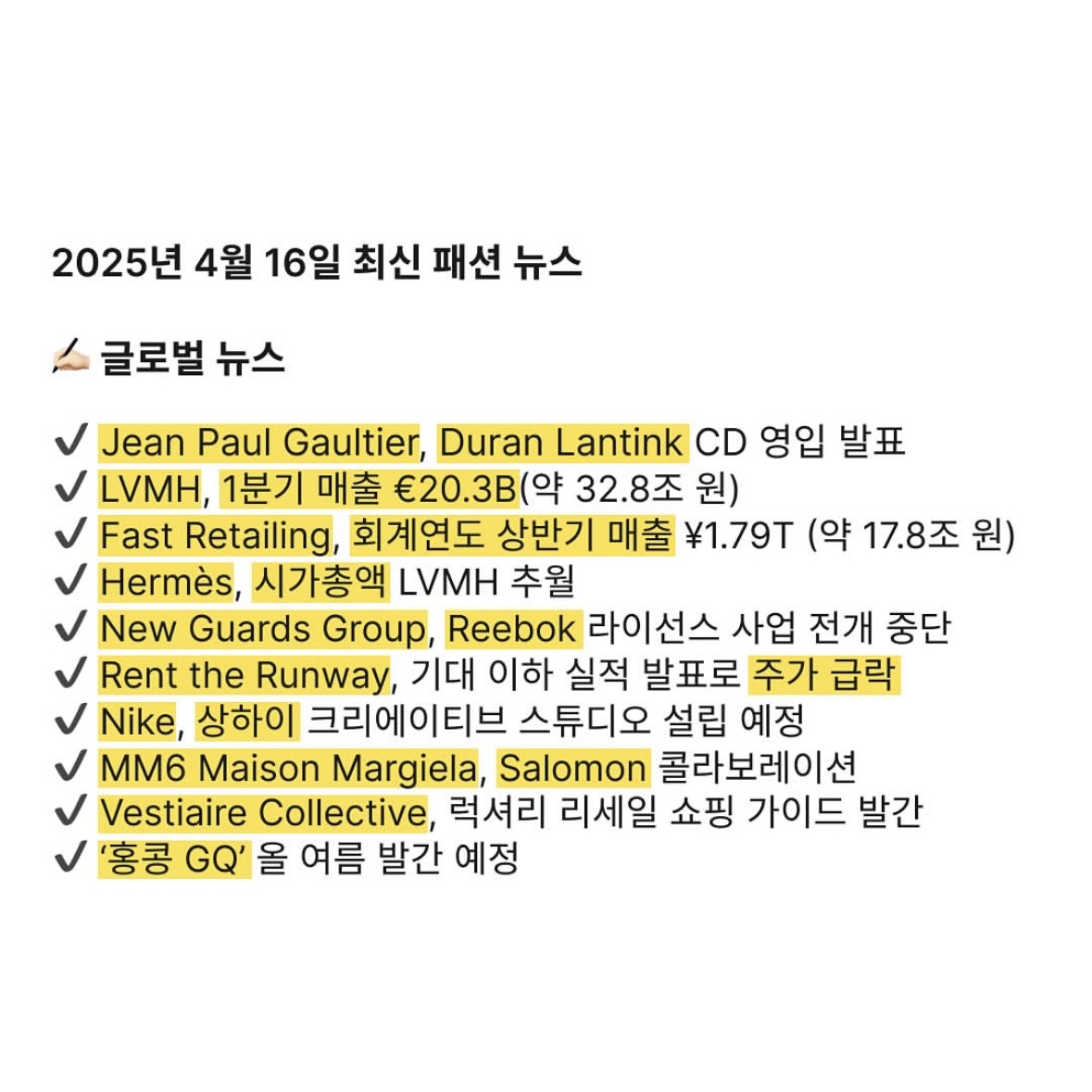 2025년 4월 16일 최신 패션 뉴스