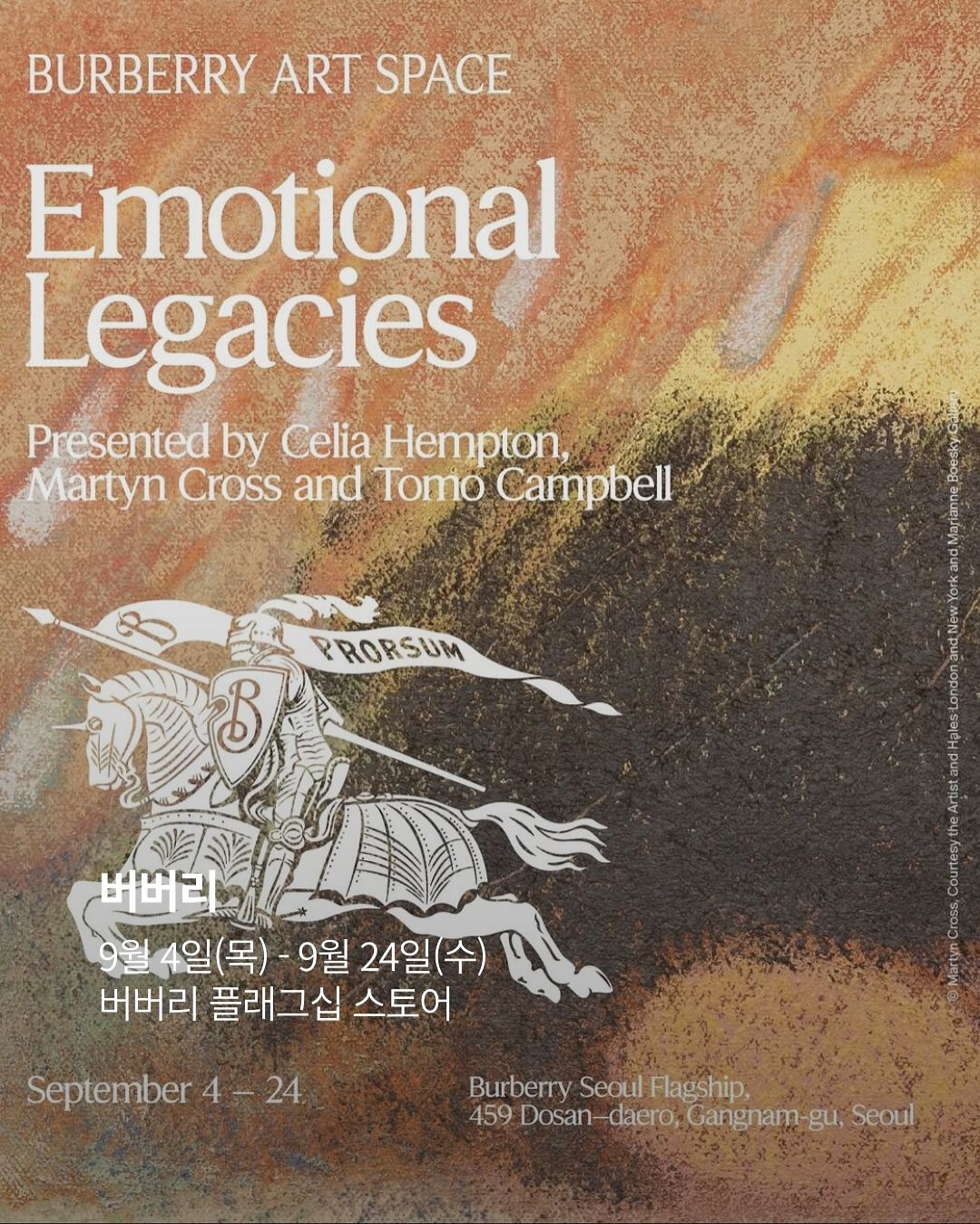 📌버버리 (@burberry) 🗓️9월 4일(목) - 9월 24일(수) 📍버버리 플래그십 스토어 (서울시 도산대로 459) ▪️영국의 세 작가가 자연과 풍경을 매개로 기억하는 전통, 정체성이 맞물리는 과정을 탐구하는 주제의 ’감정의 유산’ 전시