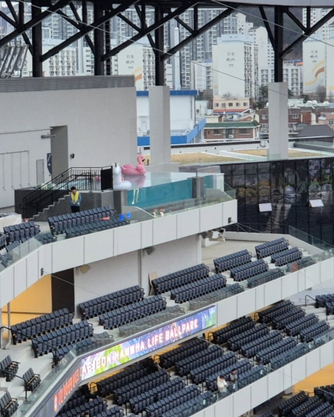 ▪️7월 8일 KIA 타이거즈와의 홈경기부터 정식 개장, 관람 티켓과 통합된 이용권을 통해 예약제로 운영 ▪️4층 수영장에서 떨어진 물에 맞았다는 아래층 관중의 불만 제기 ▪️긍정적인 평가와 함께 현실적 안정성과 불편한 요소를 지적 ▪️구장 측은 안정성을 높이고 안전 조치를 보완하겠다고 밝힘