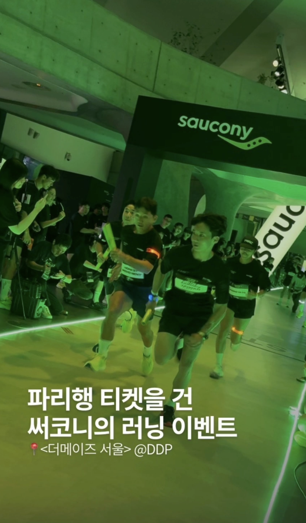 ▪️써코니의 글로벌 러닝 캠페인의 일환으로, 프랑스 파리에서 시작되어 국내 개최 ▪️DDP에서 4인 1팀 혼성 릴레이 방식으로 진행 ▪️모든 참가자는 써코니의 최신 퍼포먼스 모델 ‘엔돌핀 스피드 5’를 착용하고 실전 속 주행 성능을 경험해볼 수 있음 🎁1위 우승팀에게는 오는 12월 프랑스 파리에서 열리는 ‘Saucony PARIS 10Km DE LA TOUR EIFFEL’ 대회 참가권과 왕복 항공권 제공