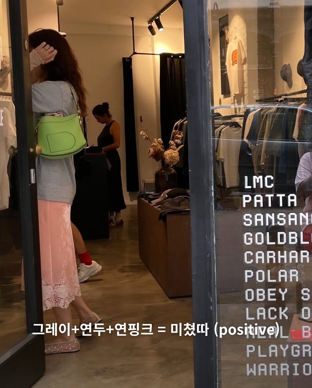 시크한 룩에 컬러 백 메는 거에 요즘 꽂힌 듯한 효진 언니