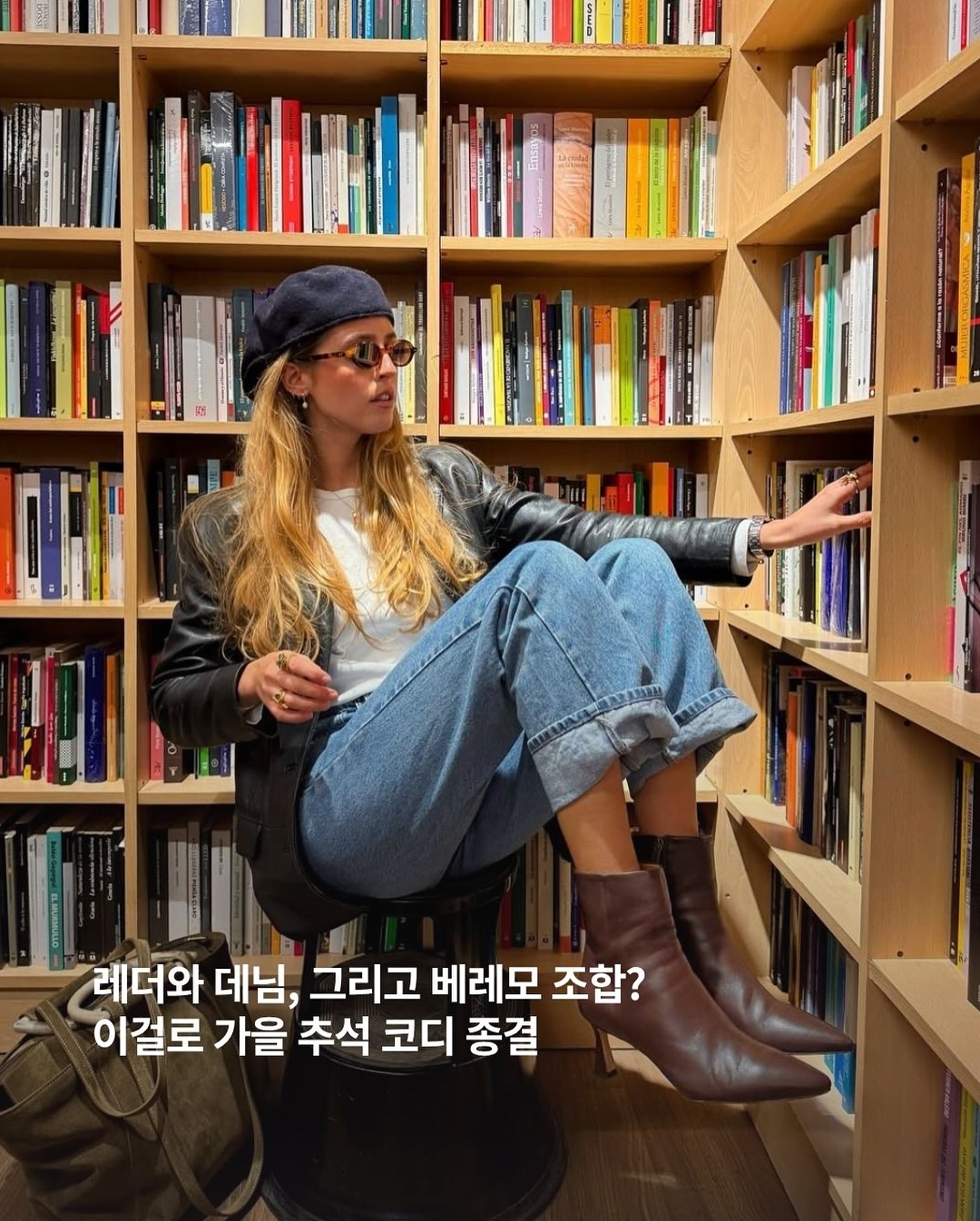 ▪️레더 재킷은 필수! 베레모랑 선글라스까지 추가해서 가을 핫껄이 되어보자