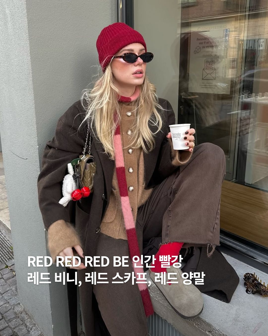 ▪️비니와 목도리, 비니와 신발 등 액세서리끼리 컬러 포인트 맞추기