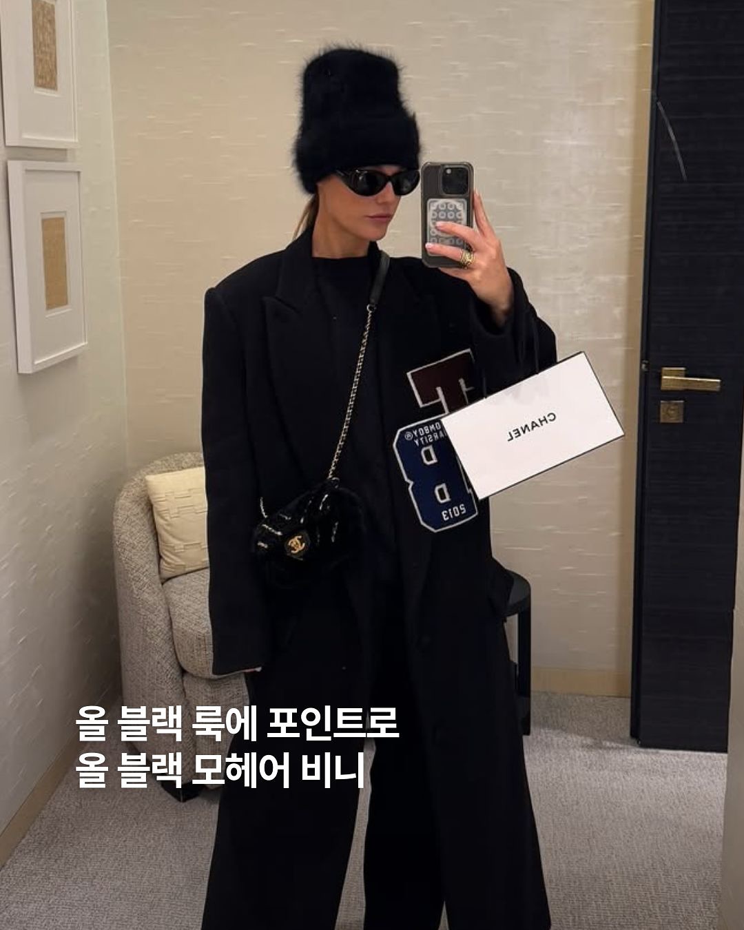 ▪️빅 로고 비니는 올블랙 룩 위에 얹어 무드 조절해주기