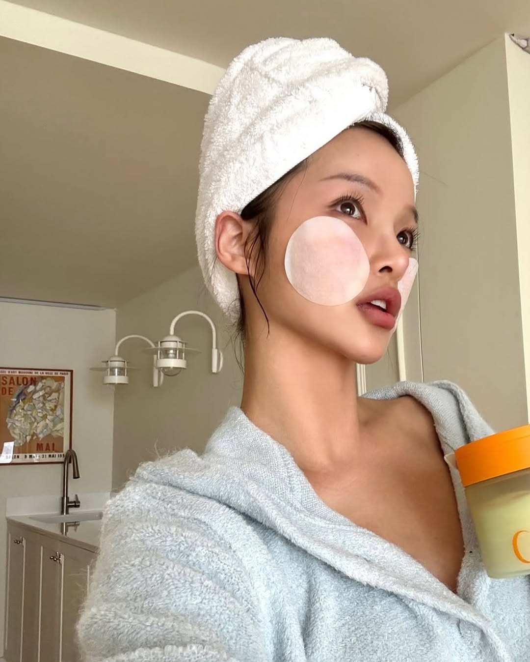 씻고나면 내가 너무 이뻐보일때가 있지 않나요? 그럴때 찍는 셀피촉촉한 피부와 붓기가 쏙 빠진 광나는 얼굴로몰닁 겟 레디윗미 셀카 어때요?📌셀카 포인트▪️ 촉촉한 피부표현은 필수! 마스크 팩 혹은 피부 화장품을 얹은채로 셀피 한장 찰칵▪️ 뭐니뭐니 해도 수건은 흰색 배스타올이지!▪️ 다양한 방식의 묶음이 있지만 클래식은 머리에 소프트 아이스크림 쉐입▪️ 배경은 무조건 침대 위 혹은 화장실 안#bathtowelselfie📷 이미지 출처 기입된 인스타그램 계정